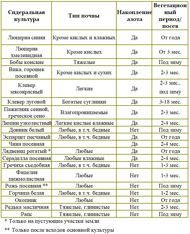 Бұл өсімдіктер негізгі дақылдарды отырғызбас бұрын бақшадағы бос жерге немесе бақша төсегіне себіледі, содан кейін өте тез өсетін жасыл масса қазылып, жерге жабылады.
