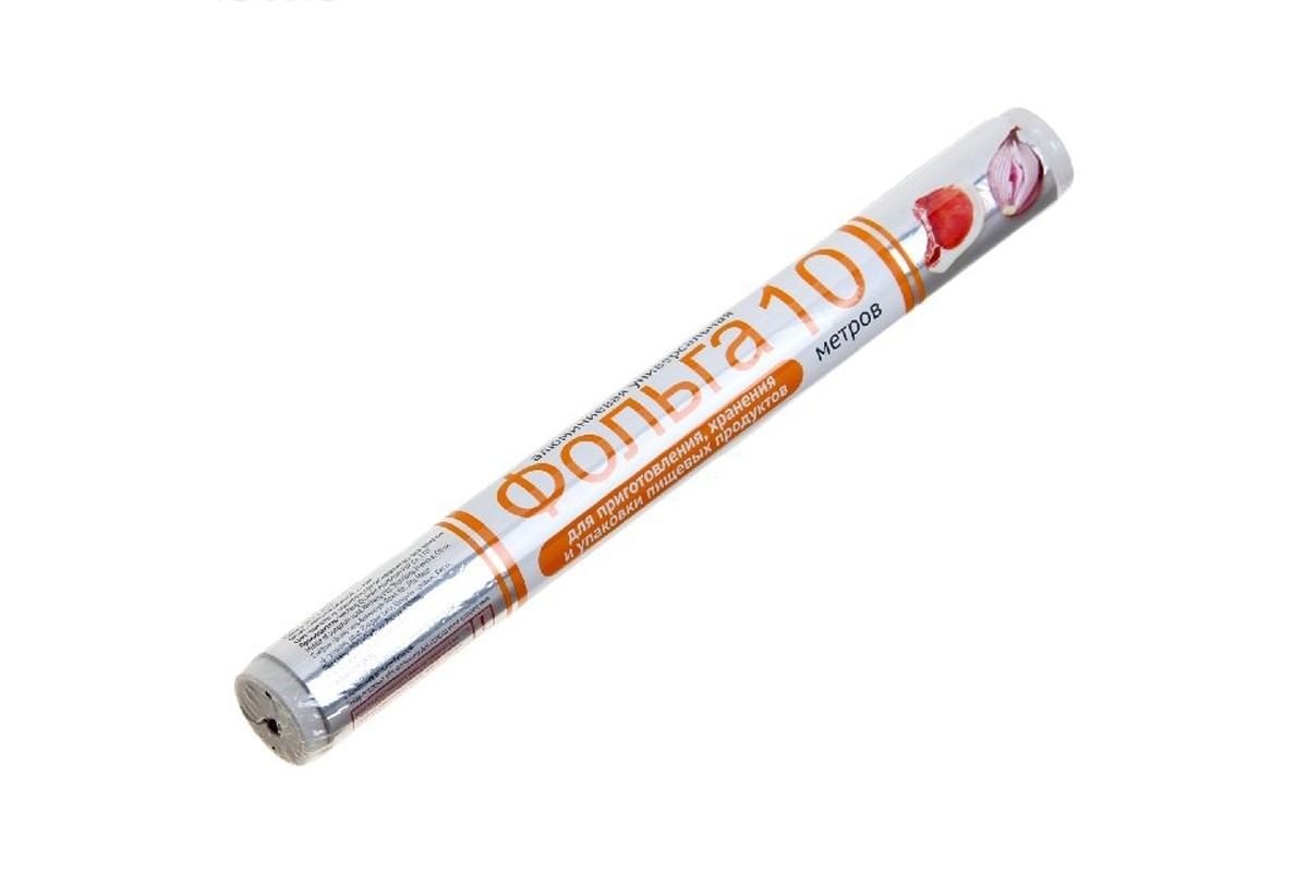 Фольга алюминиевая 10 метров в рулоне, ширина 29см., плотность 11мкр., для выпечки, запекания и другой обработки пищевых продуктов.