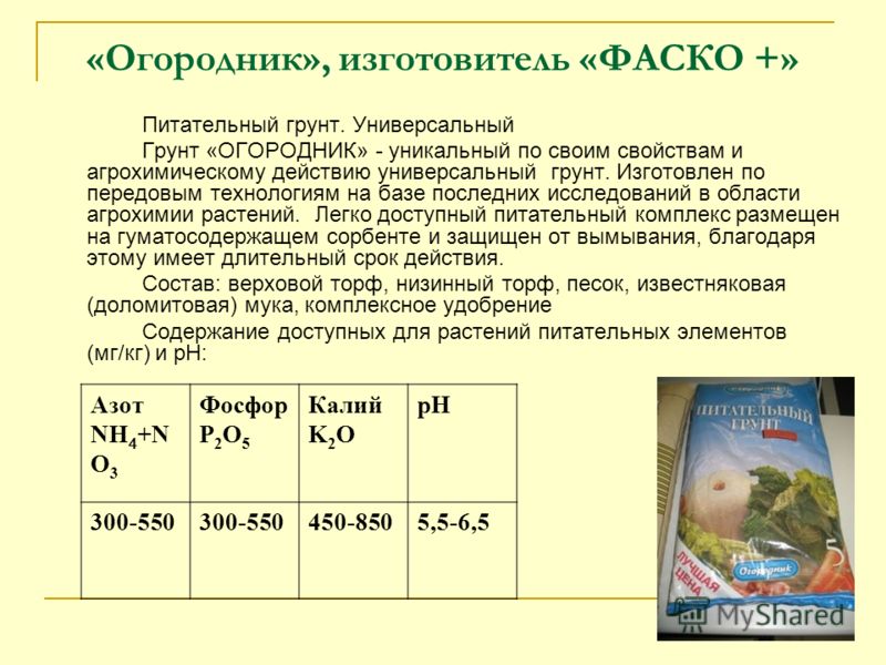 В состав грунта входят- земля, торф верховой и низинный, комплекс микро и макро элементов, доломитовая мука, песок.