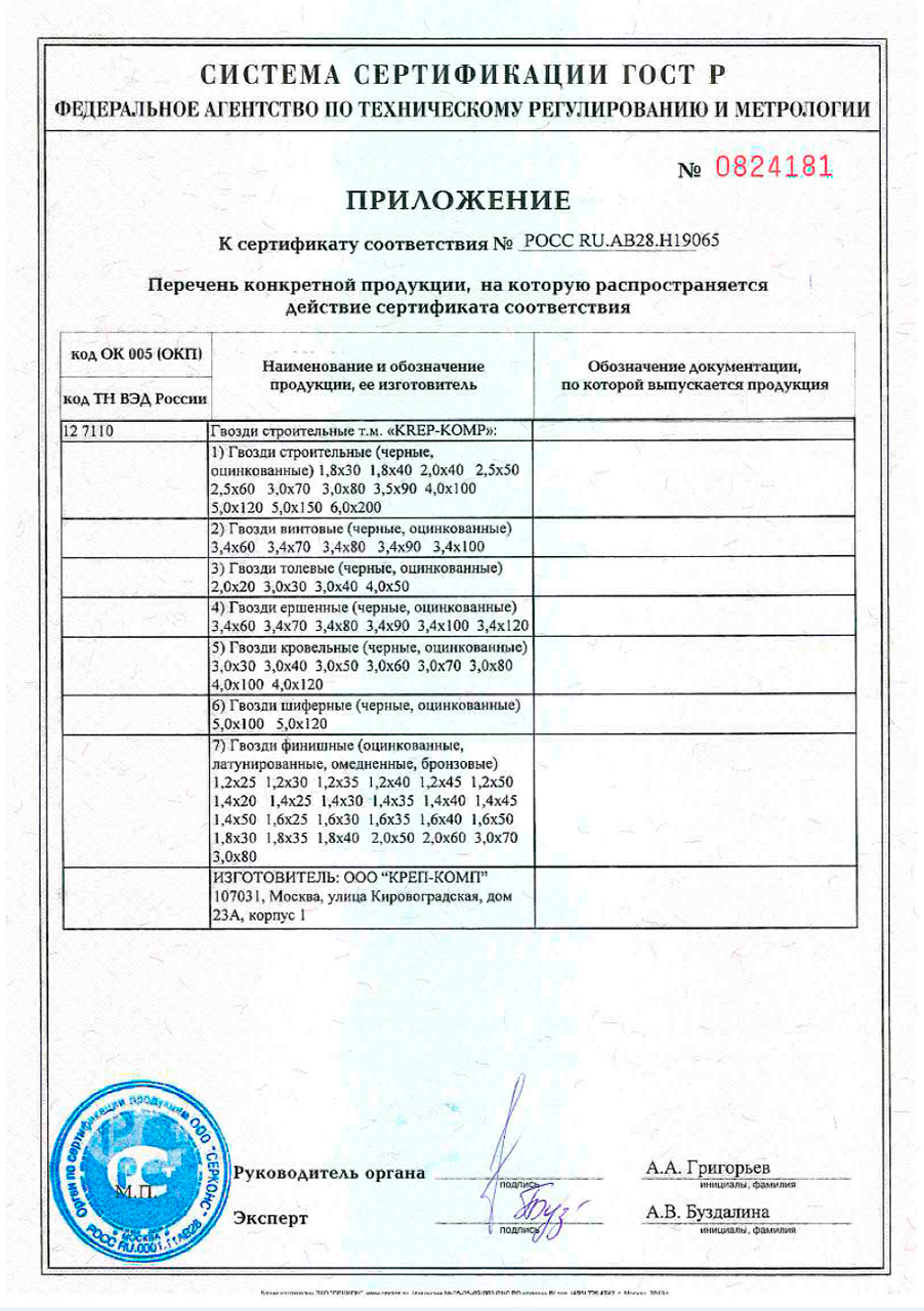 | Тип гвоздя | Строительный |
