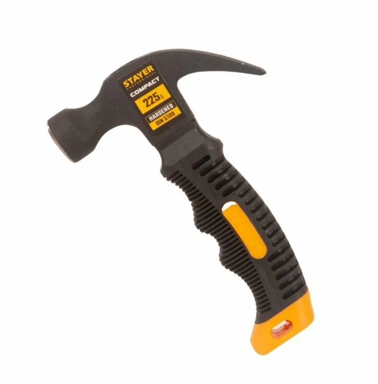 Молоток-гвоздодер StayerCompact компактный код 2026-225, вес бойка 225гр- это надежный ударный инструмент для слесарно-монтажных работ.