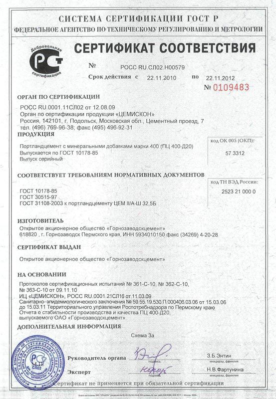 Изделия из такого цемента выдерживают нагрузку до 400кг/см2