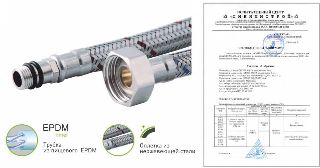 | Материал шланга | Резина (EPDM) с оплеткой из нержавеющей стальной проволоки |