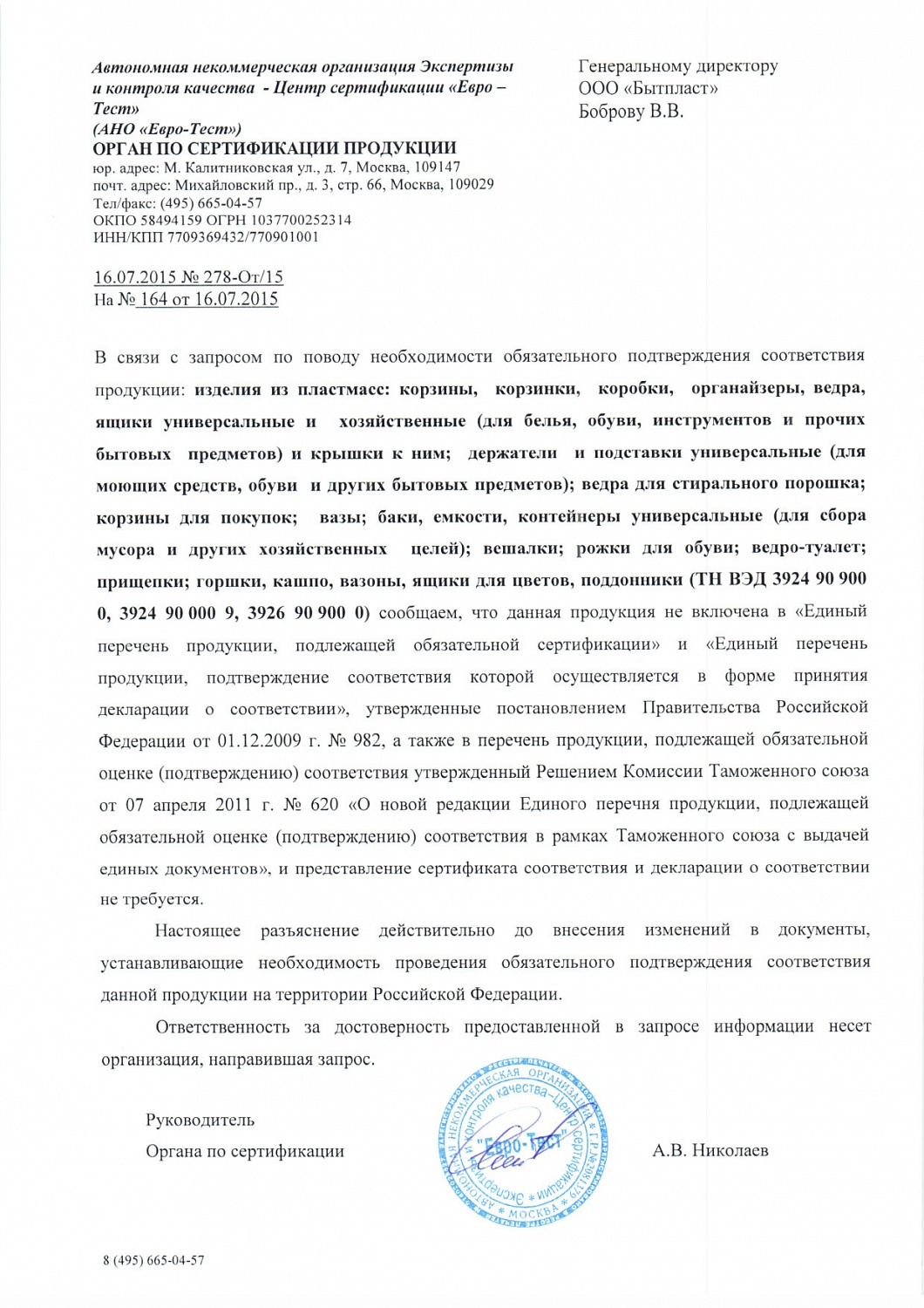 Информация для заказа