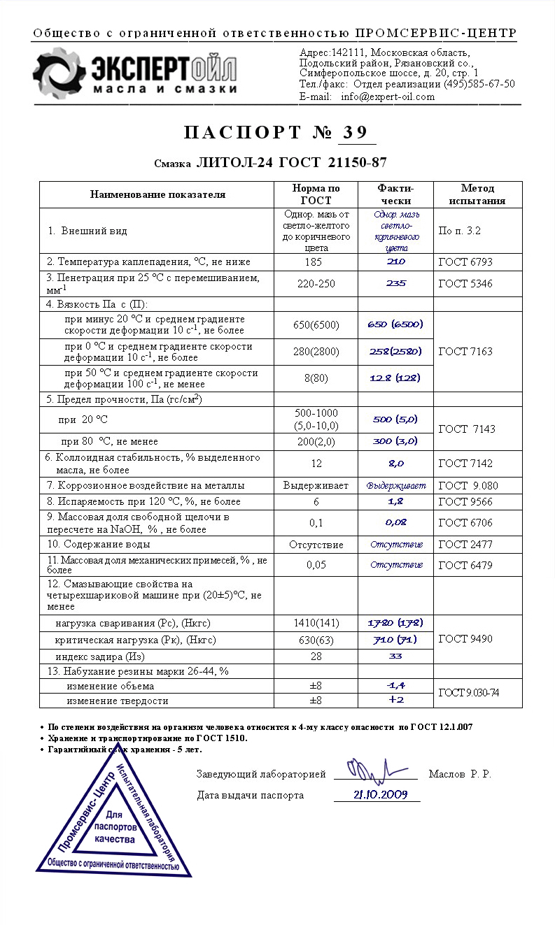 Состав- нефтяное масло, загущенное литиевым мылом, содержит антиокислительную и вязкостную присадки.