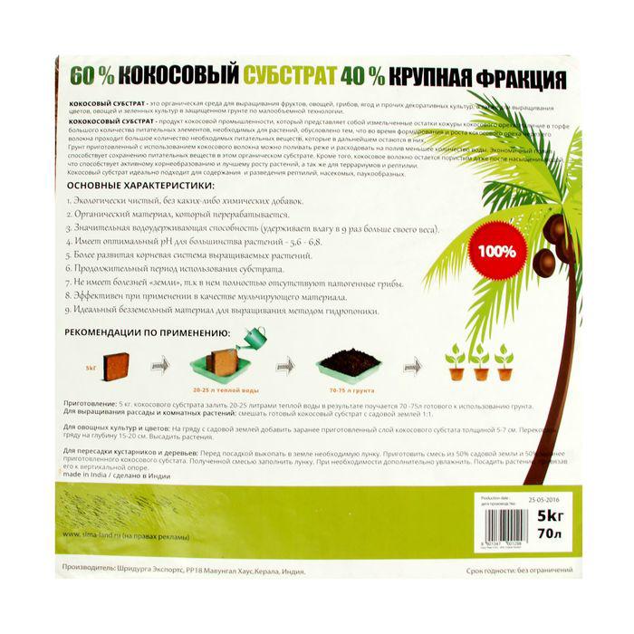Благодаря своей рыхлой структуре торф кокосовый обладает высокой воздухопроницаемостью и способен поглощать и удерживать влагу превышающую его объем в 7-10 раз.
